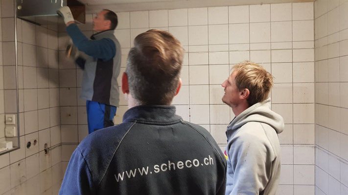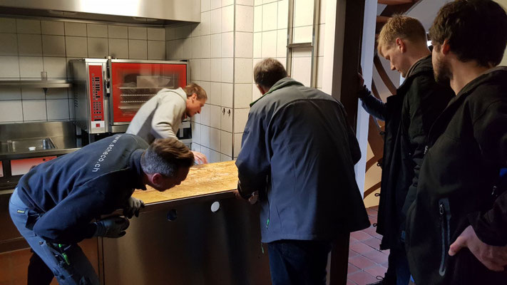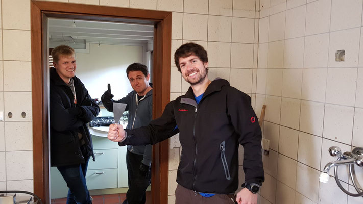 Während die Bau-Arbeiten auf dem Kirchberg zügig vorankommen - das Untergeschoss steht bereits! - durfen sich gestern Samstag einige Vereinsmitglieder in einem Fronarbeitseinsatz als Küchenausbauer üben: Unter Leitung von Roli Bernath und Roli Keller und einem Transporter von Vito Serratore wurde die Küche im Huuswurz von Vereinsmitgliedern ausgebaut.