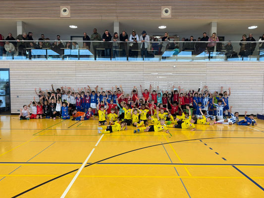 Im Januar lädt der FC Büsingen jeweils zum Hallenspieltag in der Exklavenhalle ein. Der Einladung gefolgt sind E- und F-Juniorenteams aus der Nachbarschaft, aber auch aus Singen und Konstanz. Das bis auf den letzten Startplatz besetze Turnier bot beste Unterhaltung. In 4 Altersklassen spielten je 6 Teams gegeneinander, wobei bewusst auf einen Schiedsrichtereinsatz und das Werten der Ergebnisse verzichtet wurde. Gespielt wurde im Format 4 gegen 4 auf die 3 Meter-Tore auf 3 Feldern geleichzeitig. Somit gab es für alle Juniorinnen und Junioren viel Spiel- und wenig Pausenzeit.