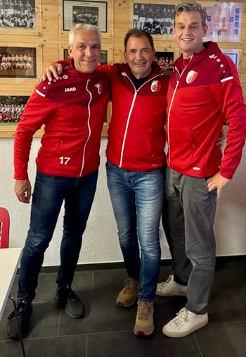 Anlässlich der 79. Generalversammlung des FC Büsingen, haben die drei Ältesten das Steuerhaus verlassen. Gegen 50 Vorstandsjahre sind dabei von Bord gegangen. Markus Werner, Seniorenobmann Heinz Wipf, Präsident Dani Spitz, Juniorenobmann (von links nach rechts)