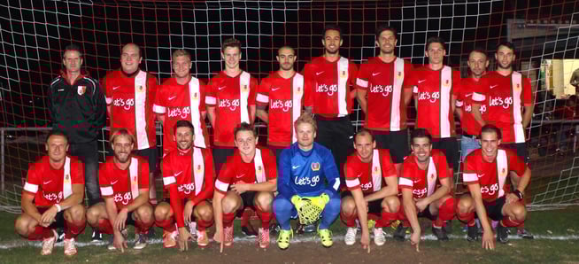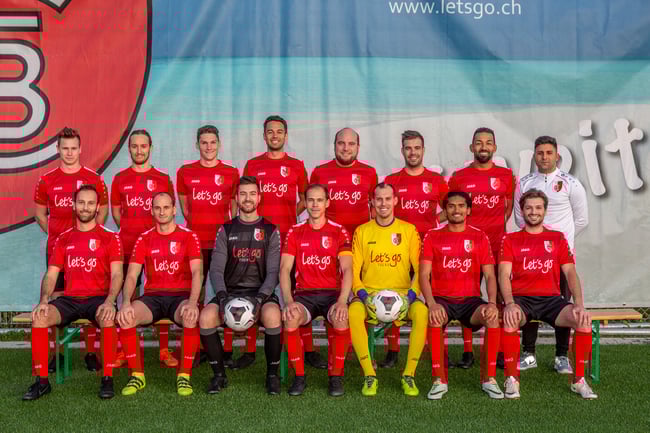 Hintere Reihe (v.l.n.r.): Akapinar (Schiedsrichter); Wolfgang Arbenz (Trainer), Mischa Landis, Patrick Witzig, Luca Keller, Elias Meier, Res Hauser, Diego Schleinzer, Thomas Schmid, Andread von Ow, Roli Heller, Lars Huber