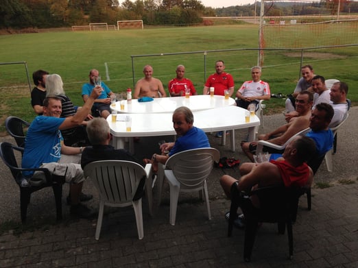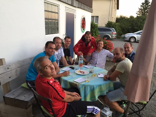 Nach einem anstrengenden Training, bei geschätzten 32, 7 Grad, wird die Saison 15/16 bei einem kühlen Glas Bier eingeläutet.